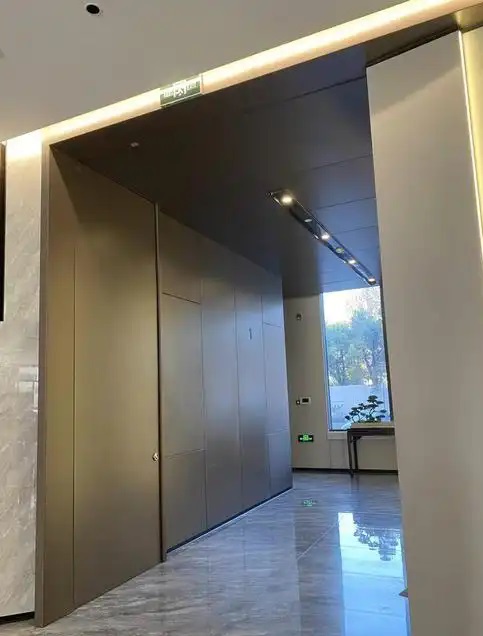 1、隱藏折疊防火門(mén)采用多扇折疊組合設(shè)計(jì),通過(guò)鉸鏈連接形成可收折的門(mén)扇單元,配備自動(dòng)關(guān)閉裝置,火災(zāi)時(shí)高溫觸發(fā)自動(dòng)閉門(mén)功能,無(wú)需人工操作。